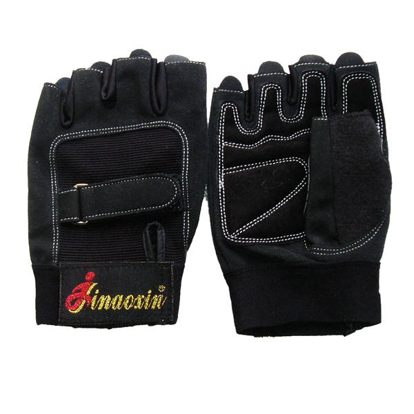 100% new and high quality. Wear-resistant, durable, comfortable to wear. Hardware cushioning foam lining. Well-designed full finger extended palm rest, more wear. Palms design of full leather wear leather turned velvet cushion. Thumb outside design cotton terry cloth, wipe the sweat easy movement. Four fingers front-end design with easy off semicircle small tongue, easy taking off gloves.