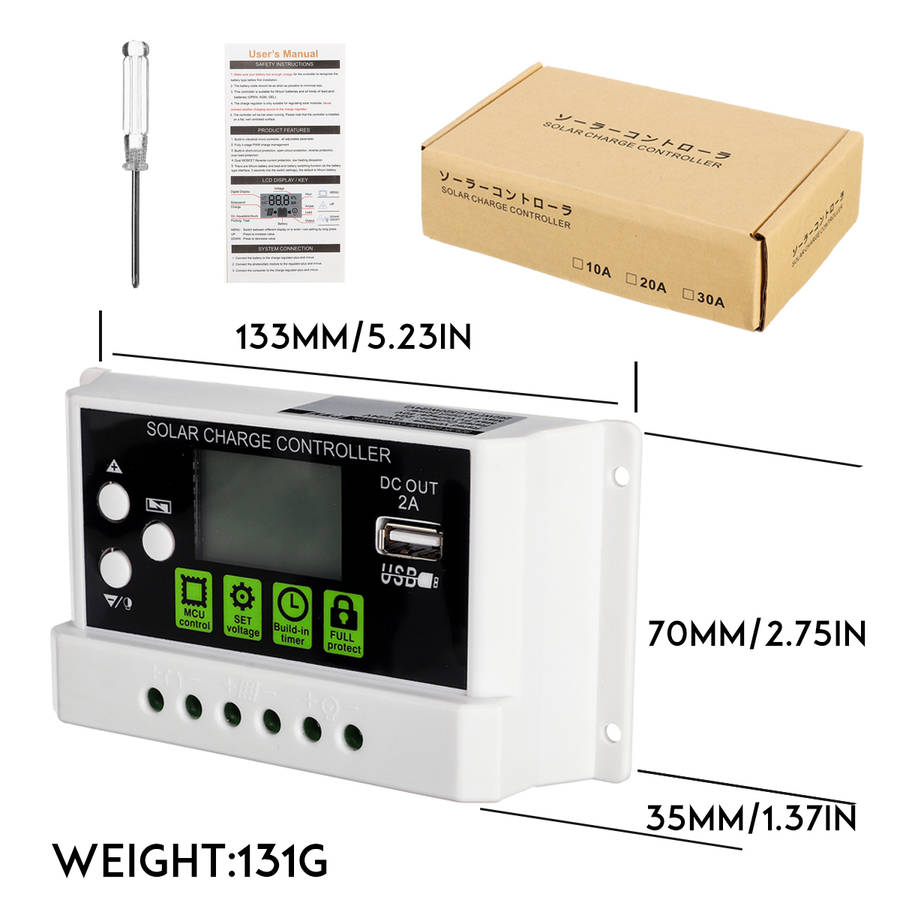 Package Included: 1x 30A PWM Solar Charge Controller 1x Screwdriver 1x Manual (in English & Chinese)
