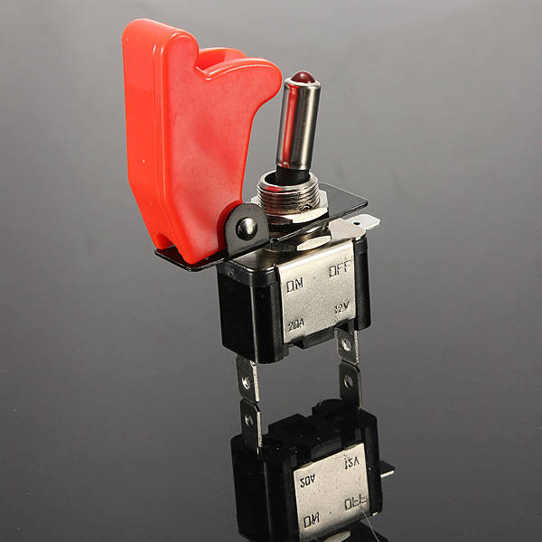 20A 12V Red Car Modification Toggle Switch ON/OFF LED lights when toggle switch is in the on position. Commonly used on car and vehicle dashboards. Description: Material:Silver plated brass terminals Cover color:Red Normal working current:20A Voltage:12V Size:38 x 15 x 65mm(L x W x H) Weight:0.038kg Package Included: 1 X Toggle Switch