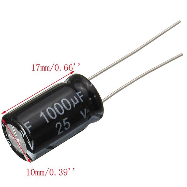 1. Color: As pictures 2. Structure: Fixed capacitors 3. Kinds: Aluminum Electrolytic Capacitors 4. Size: L x Dia / 17 x 10mm / 0.66 x 0.39'' 5. Capacitance: 1000UF 6. Voltage: 25V 7. Quantity: 20pcs Package include:
