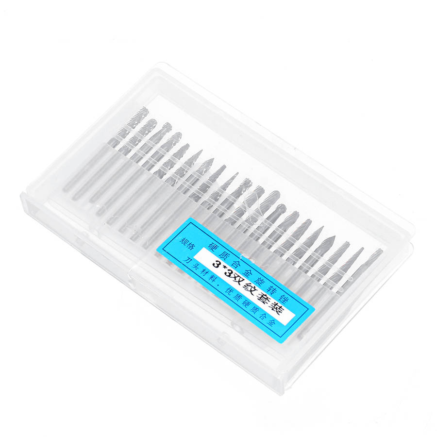 20Pcs 3x3mm tungsten steel solid carbide burrs rotary rasp grinding tools kit