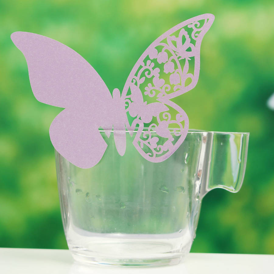 20Pcs Butterfly Wedding Name Place Cards Wine Glass Laser Cut Pearlescent Card Par... (COLOR: WHITE)