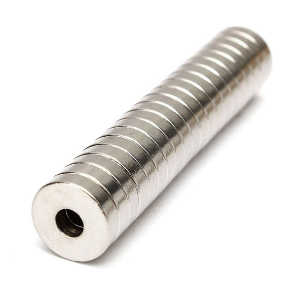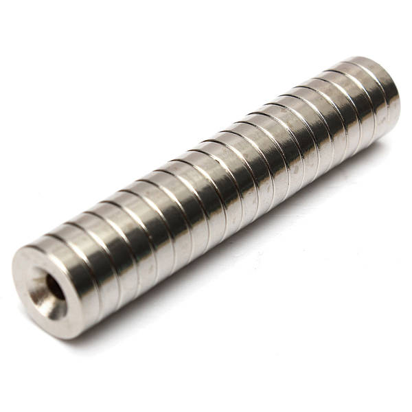 20pcs N50 Strong Round Neodymium Countersunk Ring Magnets 15mm x 4mm Hole 5mmNeodymium (chemical symbol Nd) is element 60 on the periodic table. It is a rare earth metal and forms one of the Lanthanides series. When added to Iron (Fe) and Boron (B) (chemical formula Nd14Fe21B) the resultant magnets are the strongest magnets currently available. Neodymium magnets are sometimes known as Neo, Neod or NIB magnets.