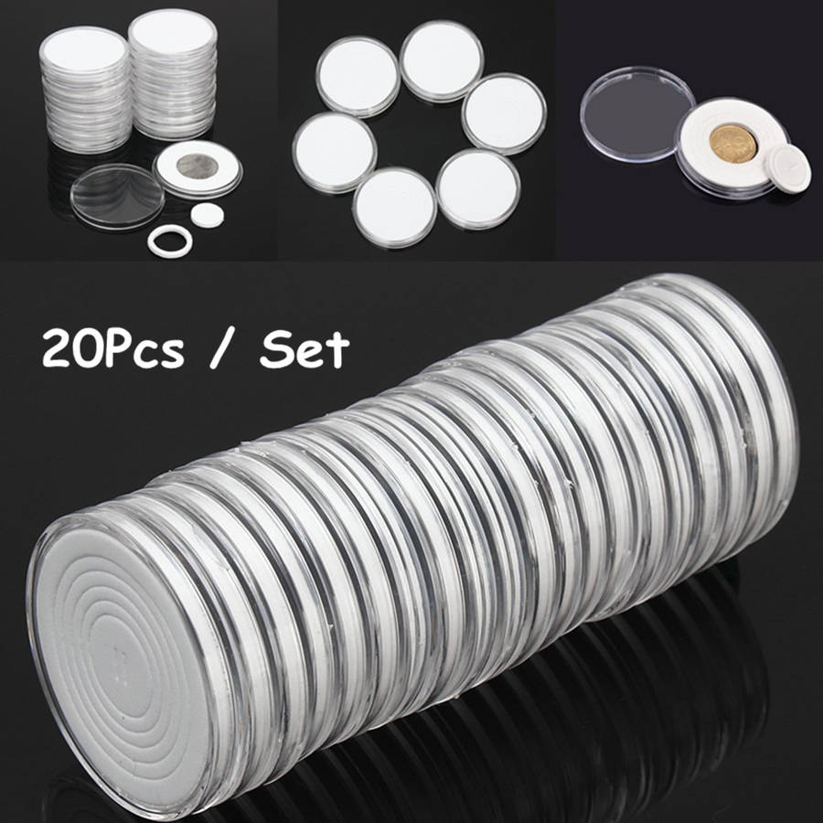 Product | 20Pcs Plastic Round Coin Holder Portable Storage Case Boxes Container 5 Size Pad |