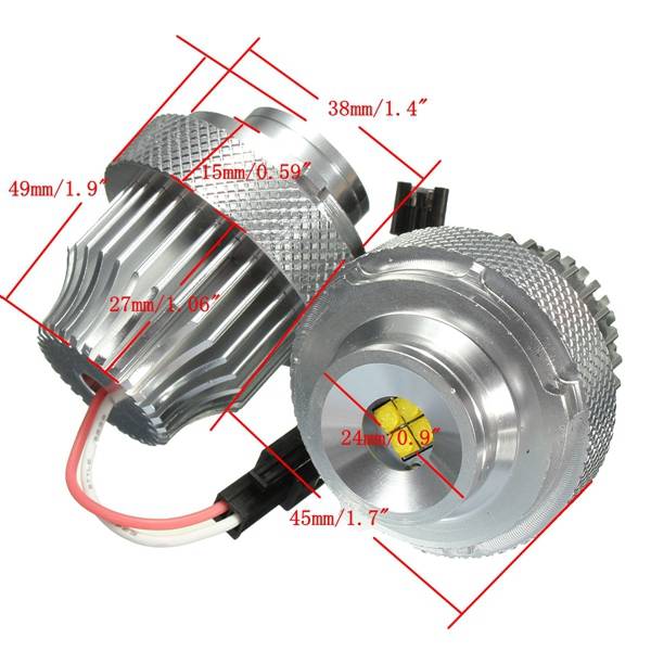 Package weight: 0.58 kg Description: Genuine 20W Per Bulb. Super brightness. Extremely long lasting life. Ultra bright and durable LED bulbs. Instant light on/off. Just plug and play. Canbus Error Excelent No OBC message after Installation. Built-in resistor,no canbus,no intetference. Fitment: BMW 5-Series 528i 535i LCI Facelift Model Specification: Color: 6500K White Lumens Output: 1600 Lumens Per Bulb Voltage: 12V-24V Working hours: 50,000 h Quantity: 2 pcs Size: details show in the picture Placement on Vehicle: Front Manufacturer Part Number: 63127187952 Package size: 170mm x 105mm x 55mm (LxWxH) Note: Fits Factory Equipped Halogen (Non Xenon) Headlight angel eyes application only Package Included: 2 X BMW Angel Eye High Power Bulbs (20W each, total 40W) 2 X Decoder Connectors