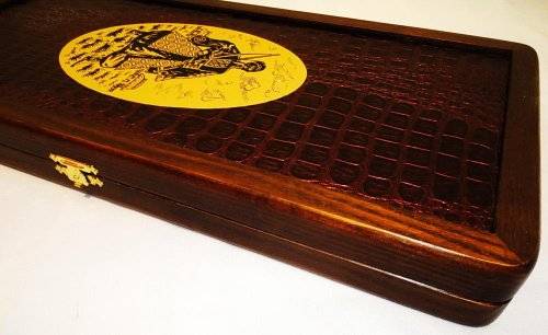 21" Backgammon Board Game Set Cossack; Wood & Crocodile Leather; Pieces & Dices