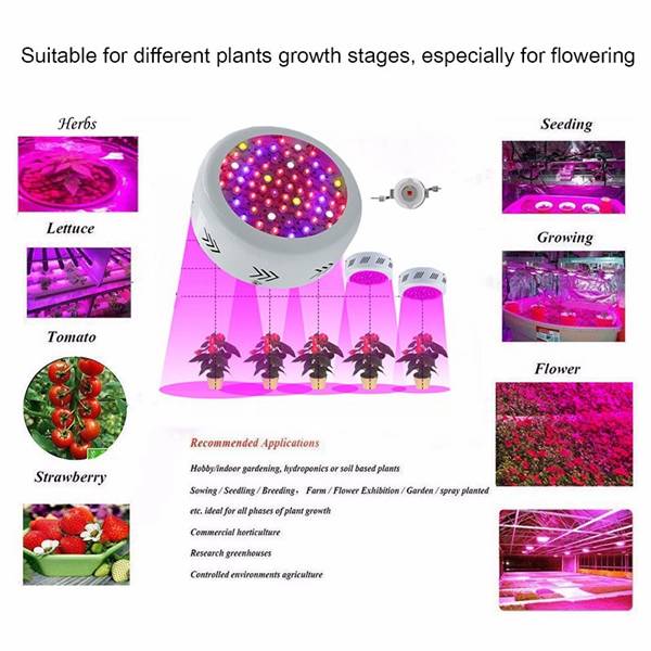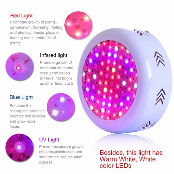 Specifications:For vegetative growth and flowering of the full spectrum: Red(610-660nm);Blue(440-460nm);UV(380-410nm);IR(730nm);White(5500-6500K);Warm White(2700-3200K)
