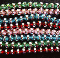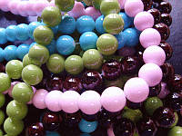 400 ASSORTED GLASS PEARLS, 8mm TO 4mm; (SHIMMERING VIOLET, TROPICAL PEACH AND AMAZON BLUE.)