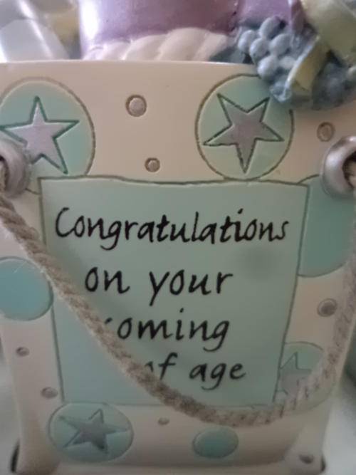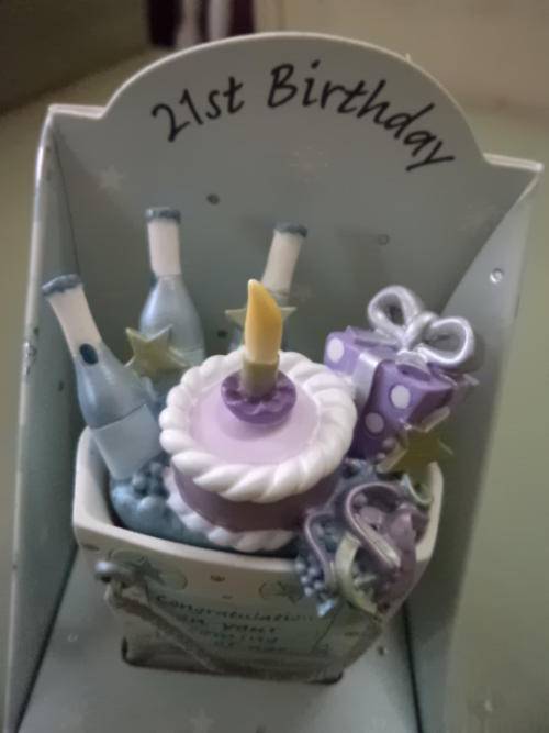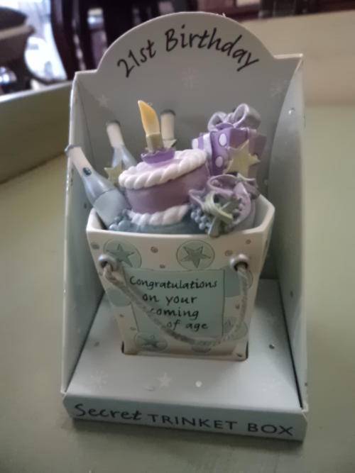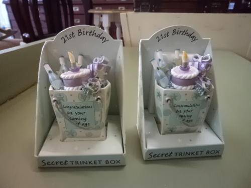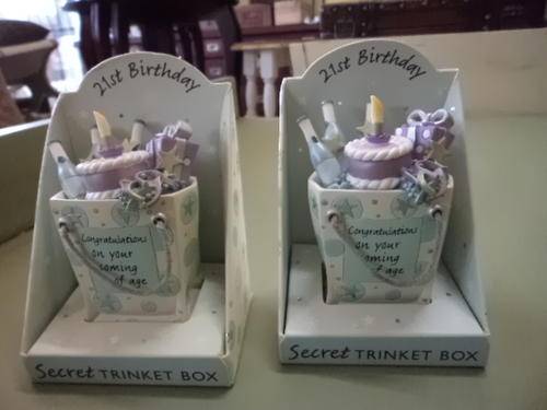 21st Birthday Trinket Holders. 6 available at R35 each. size height 10cm. depth 4cm. width 5cm.