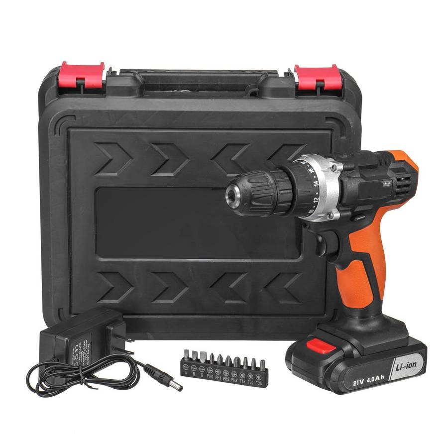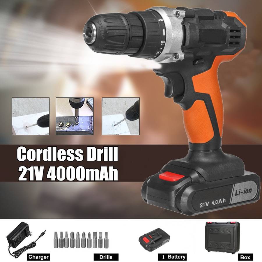 21V 4000mAh Cordless Rechargeable Power Drills 18+1 Electric Screw Driver with 1 Li-ion Battery