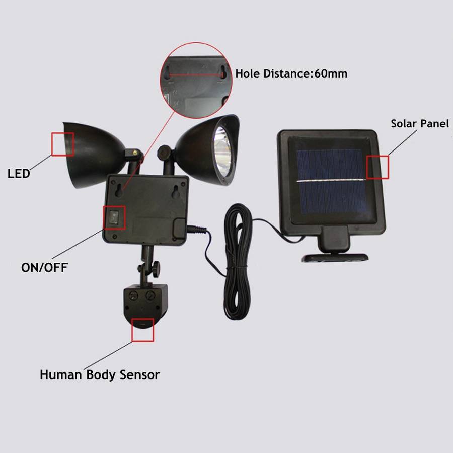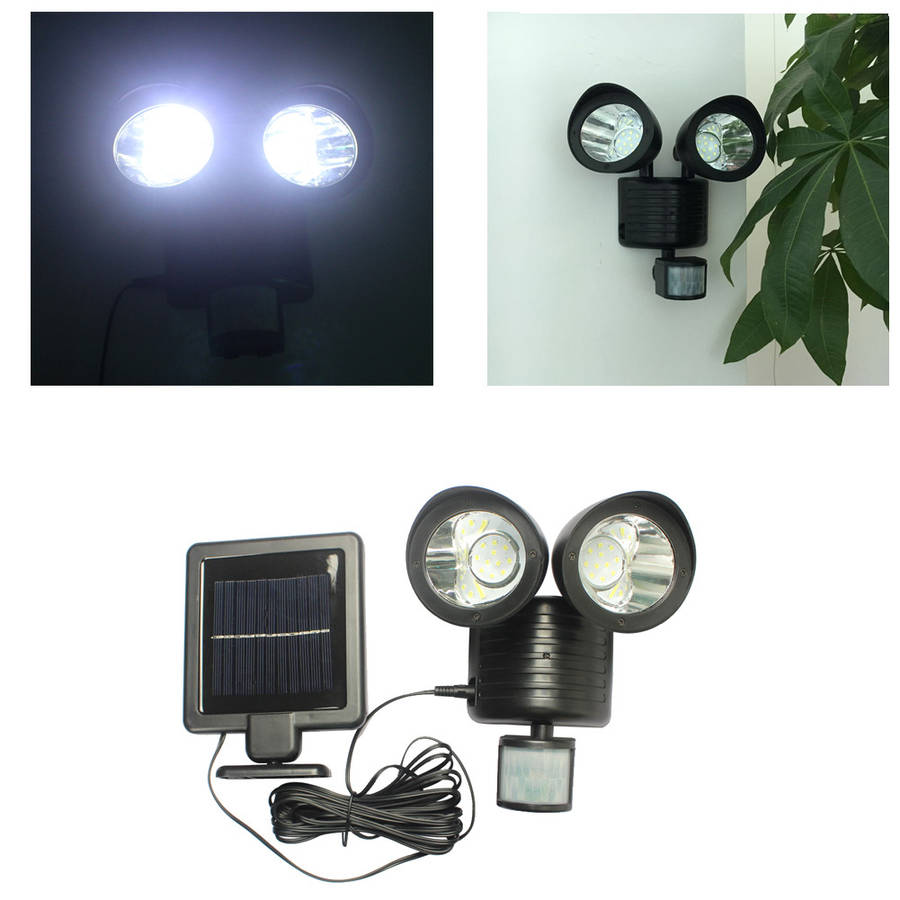 22 super bright LED bulbs (11 per light head) create bright illumination light. Light is activated by the motion sensor