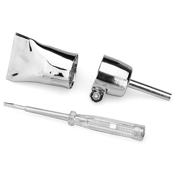 Package includes : 1 x 1000W Plastic Welder Gun (Comes with a Mini Adapter according to your country :) 2 x Nozzles 1 x Hand wheel 1 x Screwdriver