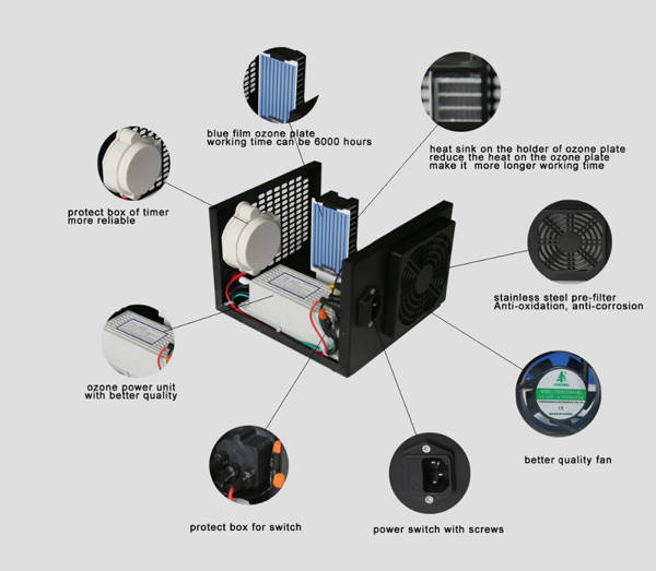 Heat sink to reduce the heat on the ozone plate, longer lifespan