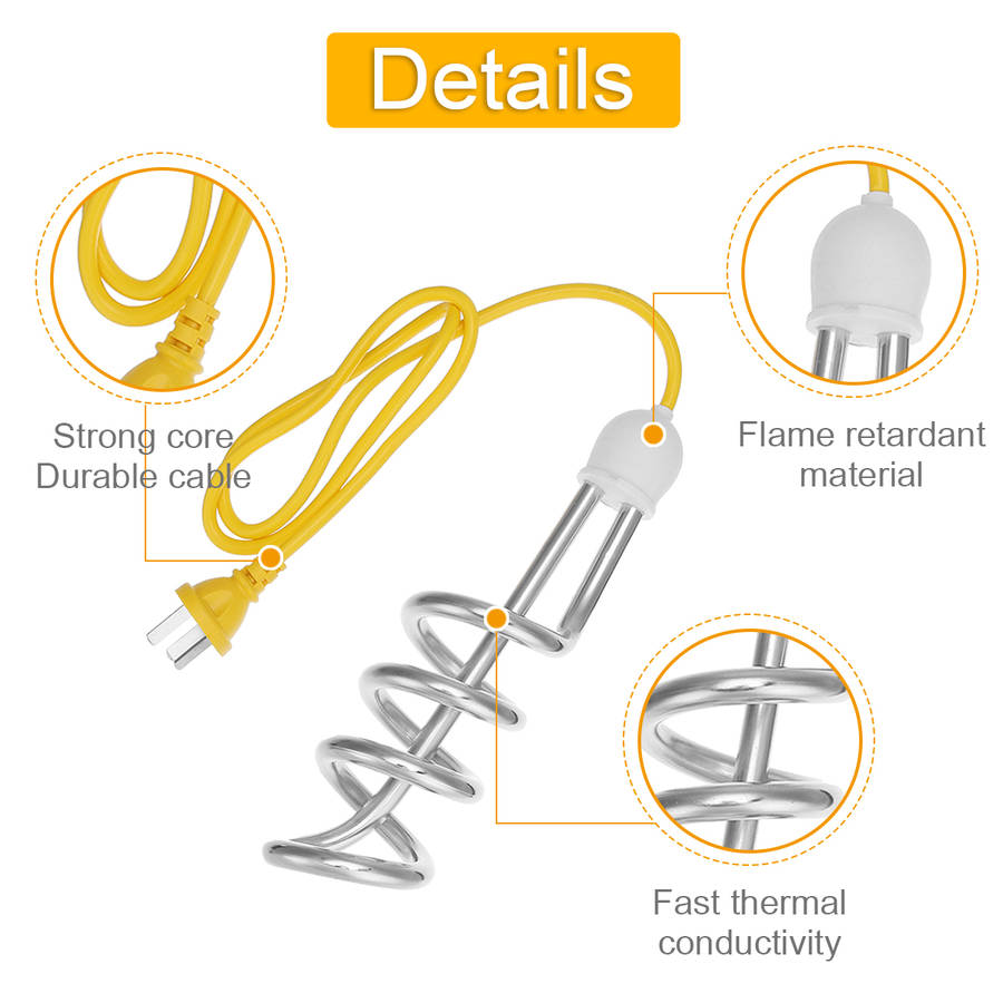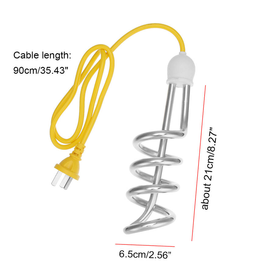 Features: aHigh power ensures a quick heating speed, very practical and convenient to use. aSpiral makes a uniform heat and fast thermal conductivity, improving the heating efficiency. aIt is lightweight and has small size, easy to store and it won`t take up much space. aCan be used to boil water, specially fit for heating water in large size container like bucket, basin.