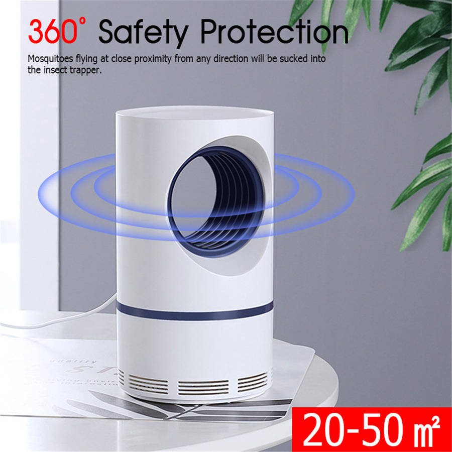 3. LED Suction Fan: 360 degrees suction fan and advanced LED light source,effective for luring mosquitoes and sucking them into the lamp, they will dehydrate and eventually die;Safe to use 24/7 and may be used at areas with kids and pets. Suitable for 20-50 Square meters.