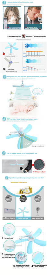 220V 7W Small Lake Green Energy-saving Fan Breeze Household Electric Mosquito Killer Mini Ceiling Cool Fan With 5 Leaves