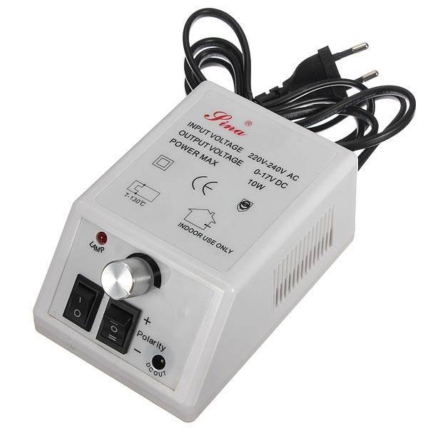 220V Pro Electric Drill Nail Art Machine Manicure Pedicure Kit Set Features: Electric Drill Nail Art Machine Rotation up to 14,000 RPM Forward and Reverse Operation switch Light-weight design hand piece for precise operationv Easy to use by turning speed control Shape and gently clean away uncomfortable hard skins,corns and hard glue The nail file can be used for natural as well as artificial nails Suitable for professional studio use or home DIY use Description: Item: Electric Drill Nail Art Machine Input Voltage: 220V~240V / 50HZ (UK plug) Output Voltage Max: 17V Power Max: 10W Machine cable: 1.5 Meters Package Includes: 1 x Electric Nail Drill Main Control 1 x Handpiece 1 x Handpiece Stand 1 x 6 type basic bits set 1 x User manual (in English) Functions of bits: 1. Emery tool: professionally shapes nails and makes the edge smooth 2. Buffing tool: polishes nails to a healthy shine, push back cuticles and stimulate the growth of nails 3. Shaping tool: flatten and smooth extra thick nails and rough surface 4. Fine shaping tool: carves into corners and spots which are hard to reach 5. Cuticle pusher: remove dead skin, keeps cuticles neat and cleans under nail Operation: 1. This tool is design for carver, engrave, rout, grind, sharpen, sand, polish,drill and more . 2. Unplug the tool form electrical outlet before loading a bit . 3. Press shaft lock button. Use the collect wrench to loosen the collect nut. Inset the bit (not included), and tighten the collet securely. But avoid excess tightening of the collect nut and never use a damaged bit. 4.There is an ON/OFF switch. When the switch is on,the tool runs at 20,000 RPM. There is a switch indicator with an orange line on it. Slide the switch to find the speed needed from 18,000-20,000 RPM.Slide the switch to the black dot for complete stop . 5. When finished, turn off the tool and unplug it. Safety Rules: * Always unplug the tool when you change accessory. * Do not engage the shaft lock button while the tool is running. * Do not use the machine near water of place it in water. If motor falls into water, unplug it immediately and do not touch the water. * Do not touch the bit or collect after using it because the bit and collect are too hot to be touched by bare hands. * Keep dust out of your eyes and lungs by using a protective eyewear of a dust mask. * Always unplug it after using the machine. * When not used, tool must be stored in a dry place and kept beyond the reach of children. Note: 1.The real color of the item may be slightly different from the pictures shown on website caused by many factors such as brightness of your monitor and light brightness 2.Please allow slight deviation for the measurement data 3.Please allow 2-3cm error
