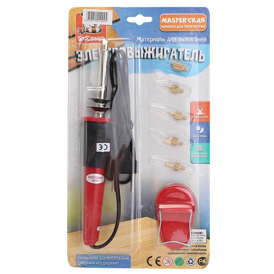 220V Profesional Hobby Crafts Wood Burning Pen Kit Set with 7Pcs Soldering Iron Interchangeable Brass Tips Set