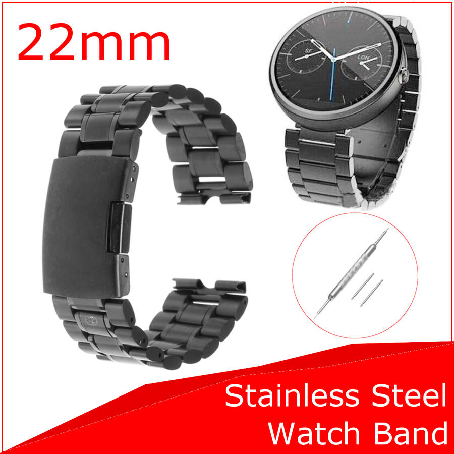 22mm Black Stainless Steel Metal Watch Band Strap for Moto 360 1st Watch+ Tools