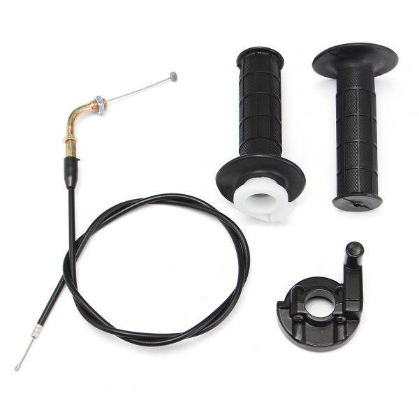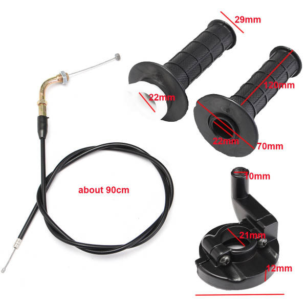 Description: More robust and durable Hand Grips are rubber material, anti-slip Throttle Clamp is made of aluminum alloys Universal fit for 50cc, 90cc, 110cc 125cc & 140cc 4-stroke dirt bike, mini bike, pocket bike
