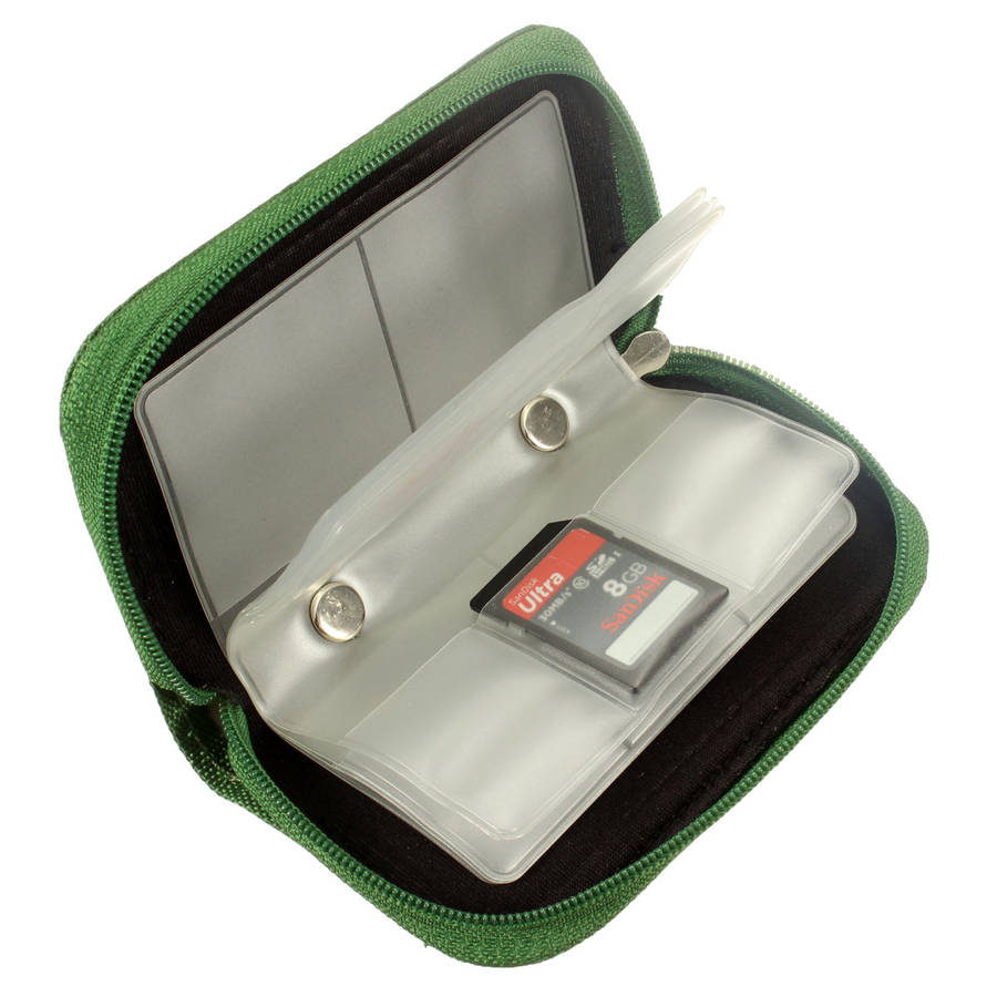 Description: 1.Suitable for SD/mini SD/micro SD/XD/MMC/CF card 2.Anti-static material (inner)/Water repellent (outer) 3.Total of 8 semi-transparent frosted bag, accommodating a total of 22 card slot. 4.18 Small slots for (mini/micro) SD/SDHC/MMC/XD/Sony Memory Stick Pro Duo 5.4 Big slots for CF cards/Smart Media/Micro Drive or Nintendo DS games.