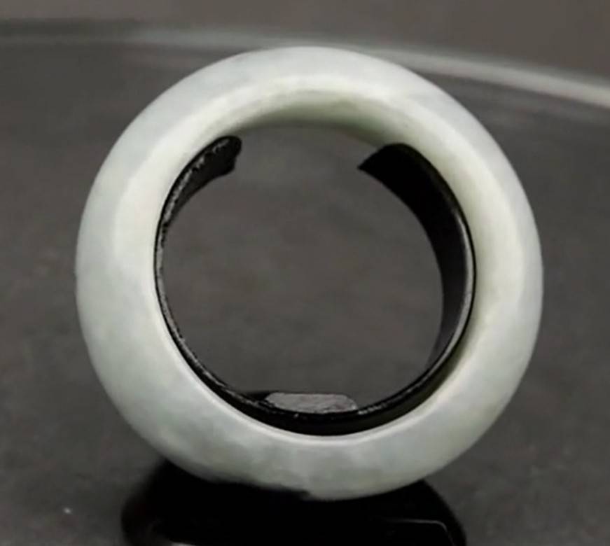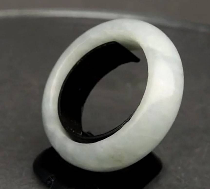 This Ring Jade originates from Myanmar and it weighs 23.17 carats. This Green, Ring shape stone, is size 26.0 x 6.5 x 4.20 mm.
