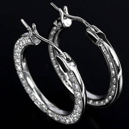 23x3 mm. AAA WHITE TOPAZ ROUND CUT STERLING 925 SILVER EARRING