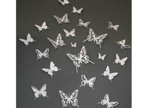 Set of 24 deep metallic purple 3d laser cut card paper butterflies for decorating walls interior design