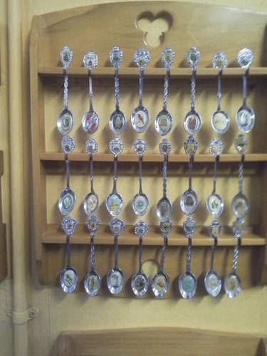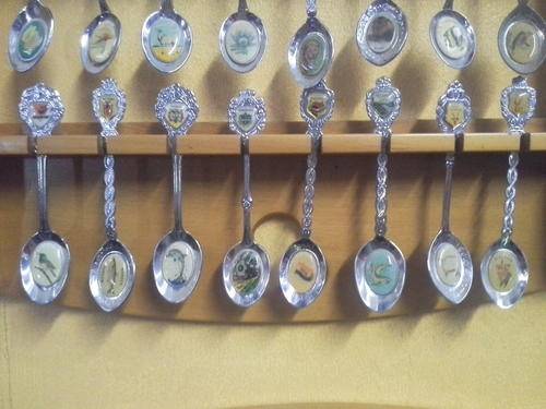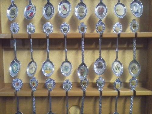24 Highly Collectable Spoons including Yellow Wood mountable Display