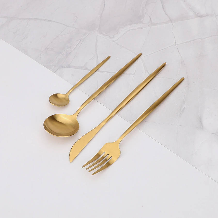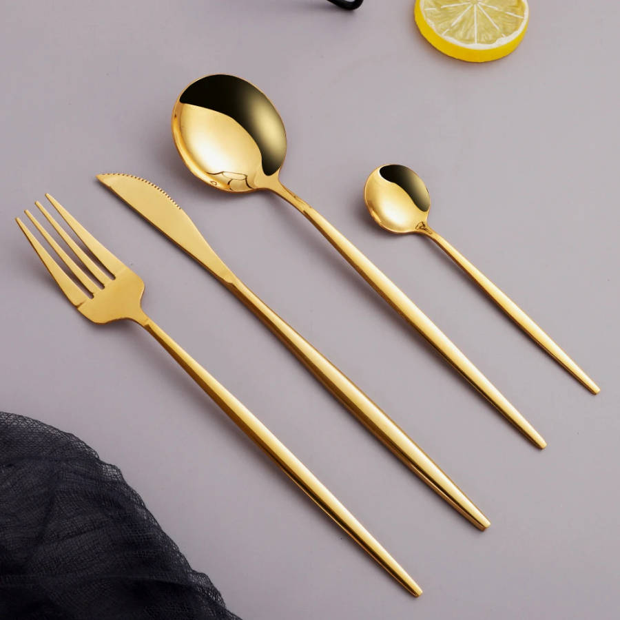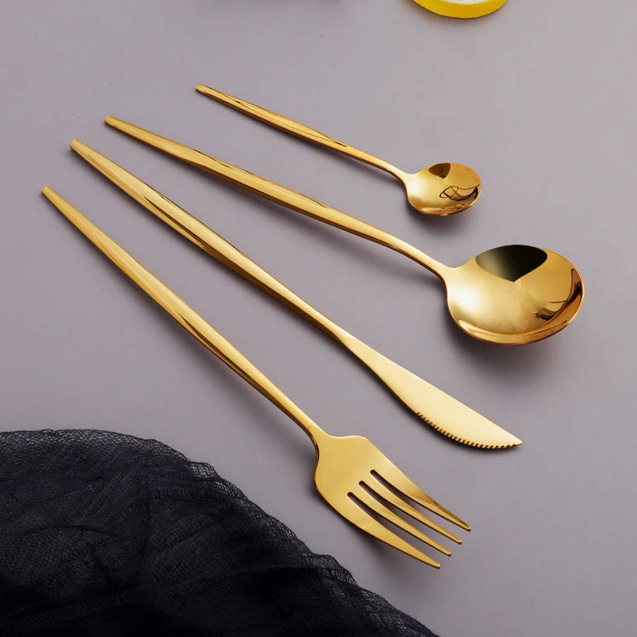 24 Pc Polished Cutlery Flatware Set, Great for Family Gatherings & Daily Use (GOLD)