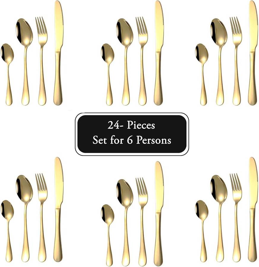 - The 24-piece flatware set is made of premium 430 stainless steel, healthy, rust-resistant, sturdy, and durable
