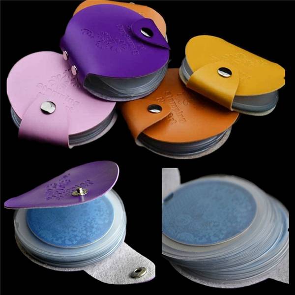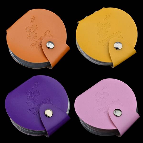 Features: 4 Colors for you to choose It is very cute and small, and very easy to carry in your bag Easy to use and its capacity has 24 slots for you to store more nail plates Description: Item Type: Nail Plate Holder Material: Plastic and artificial leather Style: 12 double-side pages(24 slots) Capacity: Each case has 24 slots Color: Purple, yellow, pink and orange(choose the one you like) Case Size: About 8cm*9cm (L*W)