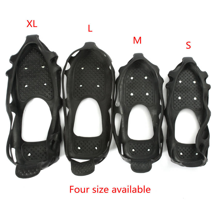 Description: Durable overshoes with good elasticity Ground-gripping steel studs. Easily fitted over existing footwear with no buckles or straps. Non-slip studs offer excellent traction on ice and snow. The material is flexible to -40ᆪC. Suitable for all kinds of sport shoes, climbing boots, double boots etc. Specification: Color: Black Material: Thermoplastic elastomer Four Size Available: S/M/L/XL S: UK:4-7;EU:35-39 M: UK:7.5-10;EU:40-43.5 L: UK:10.5-13;EU:44-47 XL: UK:13.5-16;EU:48-50 Note: 1.We provide clear pictures, measurements where possible.