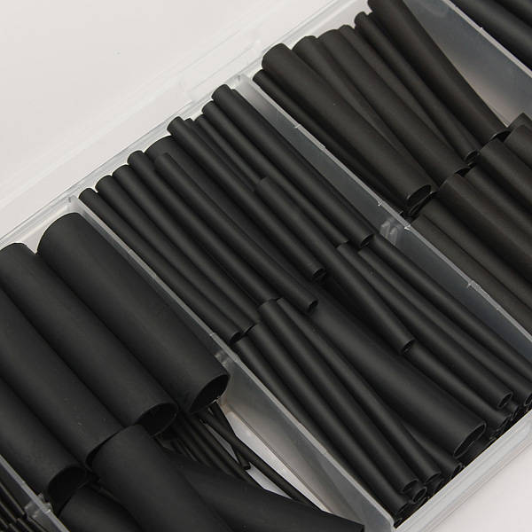Description : 240 Pcs Black Polyolefin 2 : 1/3 : 1 Halogen-Excelent Heat Shrink Tubing Kit 12 SizesFeatures : Resistance to common fluids and solvents as well as high dielectric strength.