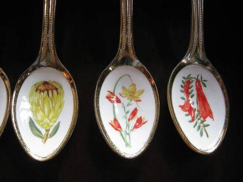 A stunning set of 24k gold plated teaspoons in a yellowwood & imbuia hanging display rack. Absolutely Stunning.  Postage R45.00.