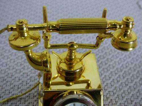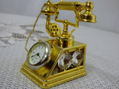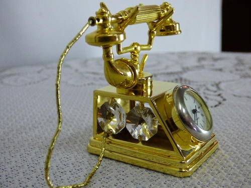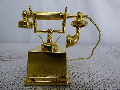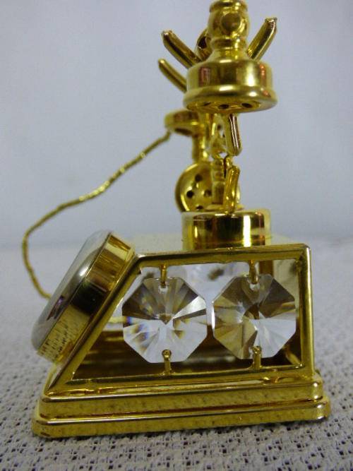 THIS ABSOLUTELY GORGEOUS MINIATURE FIGURINE OF A VINTAGE TELEPHONE IN 24 CARAT GOLD PLATE AND 4 SPECTRA SWAROVSKI CRYSTALS WILL MAKE A STUNNING DISPLAY PIECE, OR A GIFT FOR THAT SPECIAL LADY OR FRIEND IN YOUR LIFE. ABSOLUTELY FABULOUS.