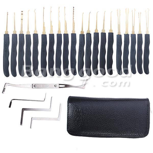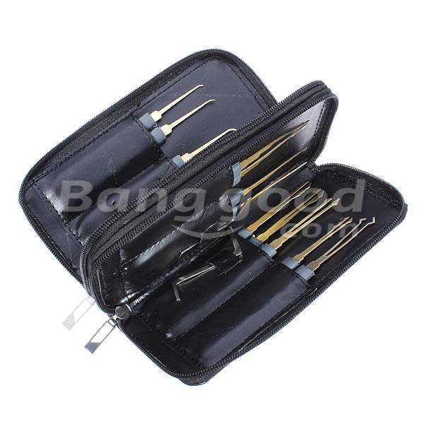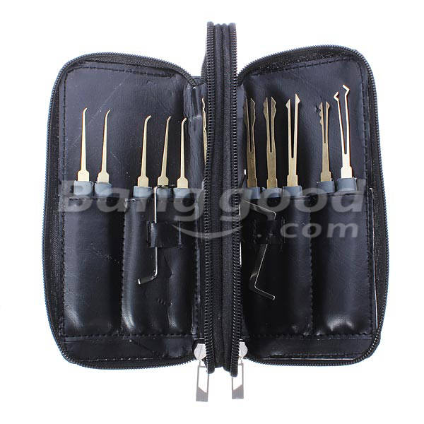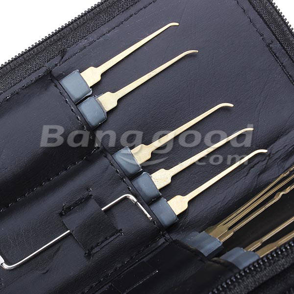 Package include 20 pieces lock picks and 4 pieces tension tools. A good selection of lock picks, rakes, hook picks and a dimple rake. Comes in a handy zippered leather case, convenient for your collection and carry.