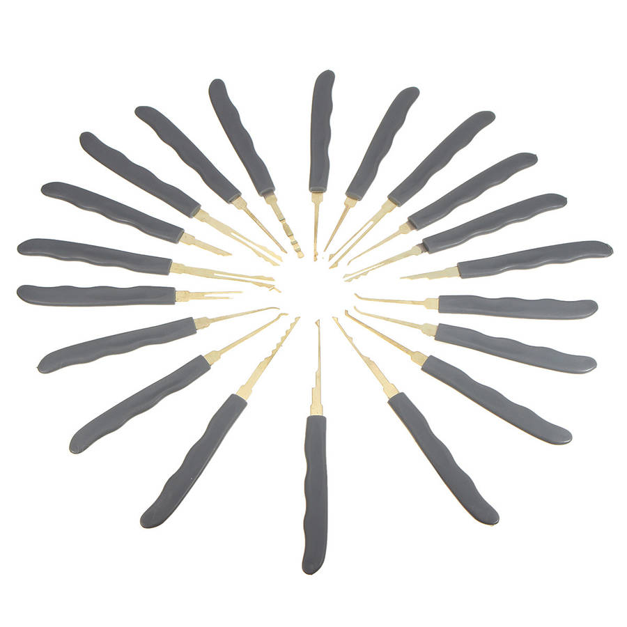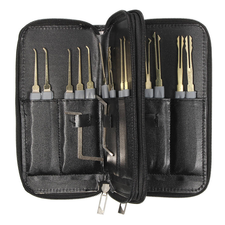 Package include 20 pieces lock picks and 4 pieces tension tools. A good selection of lock picks, rakes, hook picks and a dimple rake. Comes in a handy zippered leather case, convenient for your collection and carry.