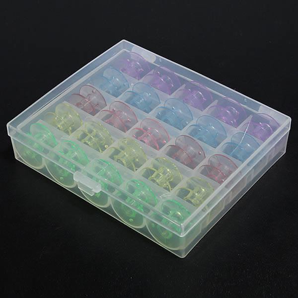 Description: 25pcs empty sewing machine plastic bobbins in storage box Suitable for Most Janomes, Singers, and some late model Brothers Features: Material: Plastic Color: Colorful Box Size(LXWXH): 11.8cm X 9.8cm X2.8 cm/4.6"X3.9"X1.1" Bobbin Size: 2cmX1cm/0.8"X0.4" Weight: 85g Package Included: 1 X Plastic Box with 25 Bobbins Notice: 1.Please allow 1-3mm error due to manual measurement. pls make sure you do not mind before you bid. 2.The colors may have different as the difference display,pls understand.