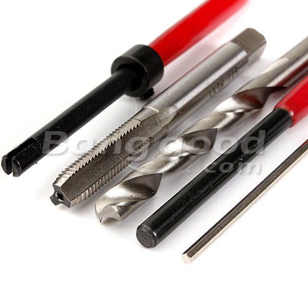 How to use : 1.Drill out damaged thread using correctly sized drill bit(supplied)