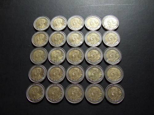25 x Circulated 2008 Mandela 90th Birthday R5 coins - please note that most are well circulated!
