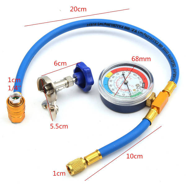 250PSI Recharge Measuring Hose Gauge Valve Refrigerant Pipe R134A R12 R22