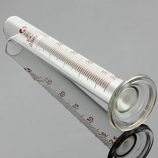 Package weight: 0.07 kg 25ml Glass Graduated Measuring Cylinder Tube With Round Base And Spout Descripiton: Material:borosilicate glass Capacity:25ml Feature: 25ml glass graduated measuring cylinder with metric scale Round base with spout and break-resistant collar Idea for lab liquid volume measuring usage Package included: 1X 25ml Glass Graduated Measuring Cylinder