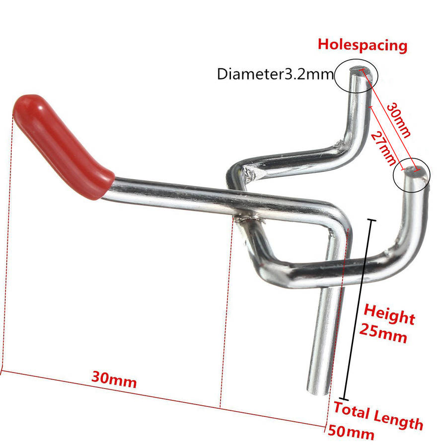 Specifications: Arm diameter: 3.2 mm Size: 50 x 25 x 30 mm / 1.97'' x 0.98'' x 1.18'' Material: Stainless steel Color: Silver Max loading capacity: 1~1.5KG Number of Hooks: 25 pcs Weight: 276 g