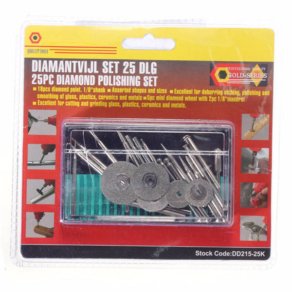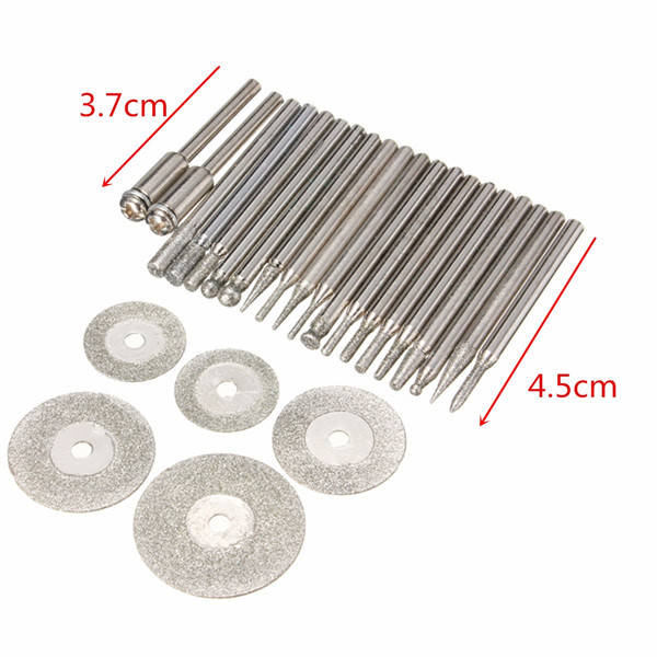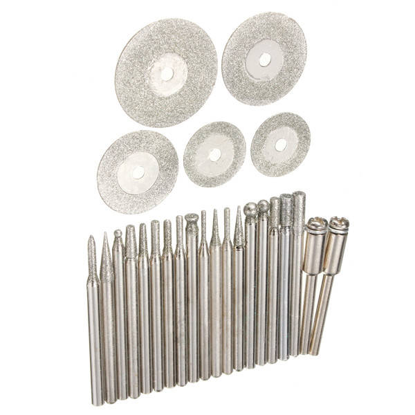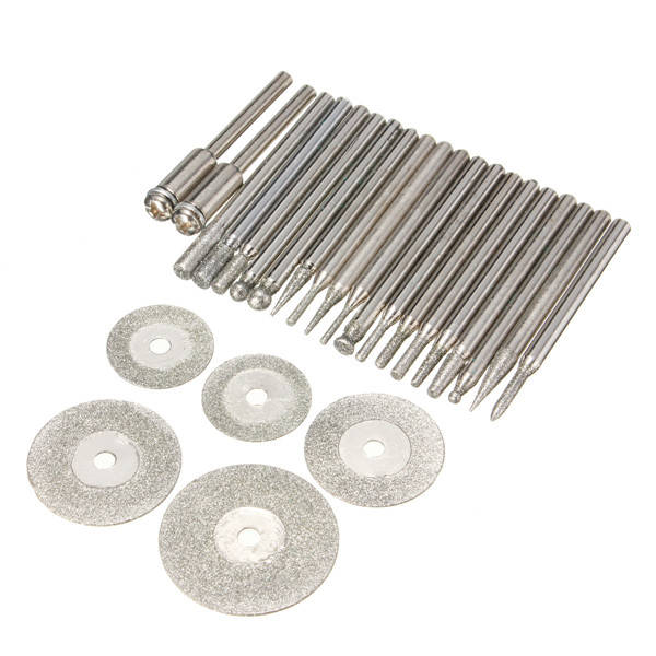 25pcs Diamond Coated Rotary Burrs and Cutting Wheel Blade Disc Set for Dremel R