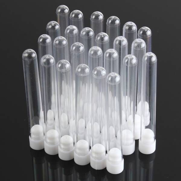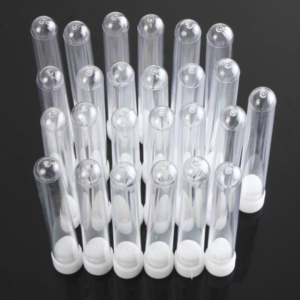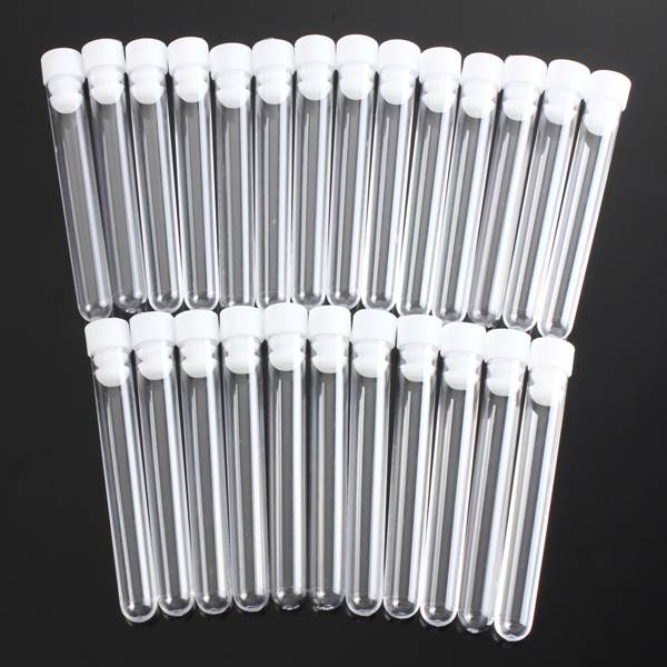 25pcs Round Bottom Clear Plastic Test Tube With Cap Stopper 15X100mm