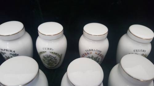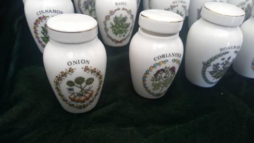 26 Gloria Concepts Inc. The Franklin Mint Set Porcelain spice jars 1985 Japan, all in excellent new condition, when turned around has the herb/flower illustration on.