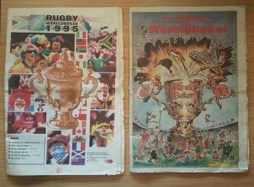 Below : Two newspaper supplements on the 1995 Rugby World Cup (pre-tournament). Supplement to the 'Rapport' newspaper (32 pages), supplement to the 'Burger/Beeld/Volksblad' newspapers (24 pages). Both the same size : 420mm x 280mm.