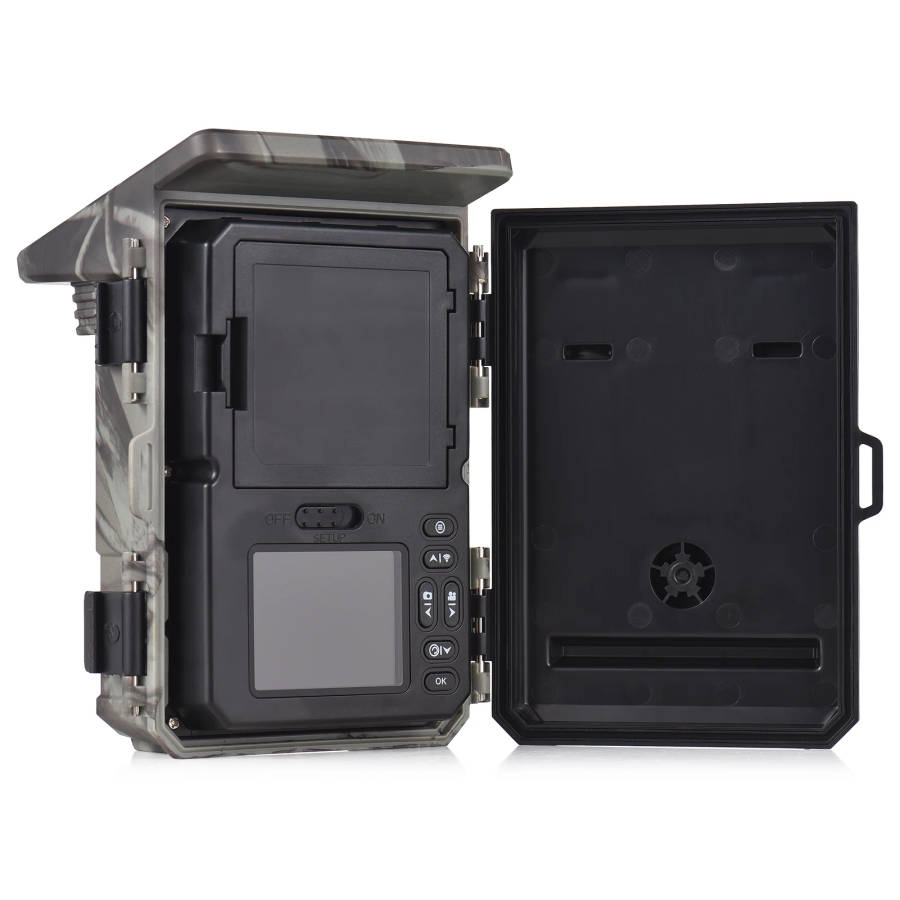Specifications: Material: Plastic Photo Resolution: 50/36/24/20/16/12/8/5/3/1MP Video Resolution: 4K/2.7K/1080P/720P/480P Detection Angle: Up to 120° Detection Distance: 80ft (day), 65ft (night) Fill Light LED Wavelength: 940nm (No Glow) Trigger Time: 0.3S Waterproof Level: IP65 Working Temperature: -4F~160F Memory Card Type: Up to 256GB TF Card (Class 10) Power Supply Type: Built-in 2600mAh lithium battery Battery Type: AA Battery (Not Included Standby Time: Up to 6 Months Photo Format: JPEG Video Format: AVI Size: 10.2*9*14cm Weight: 480g