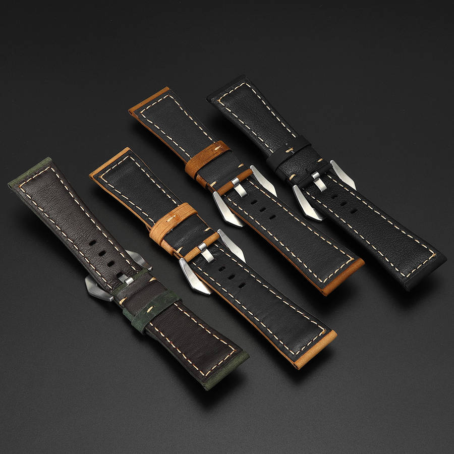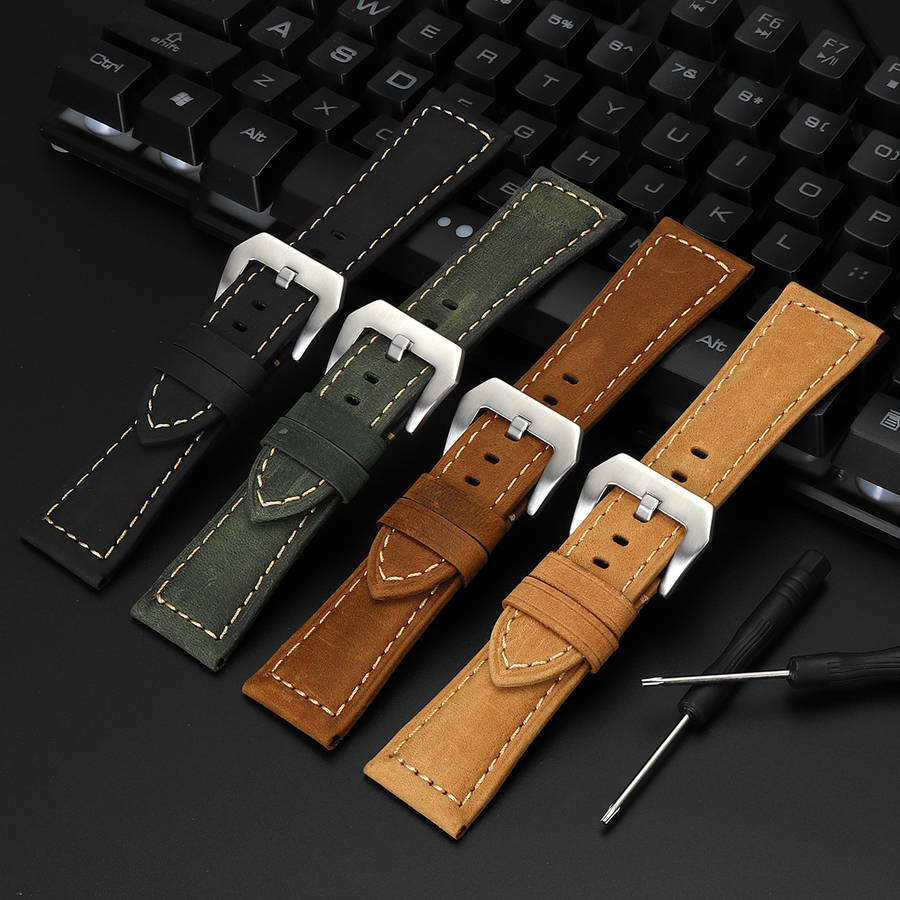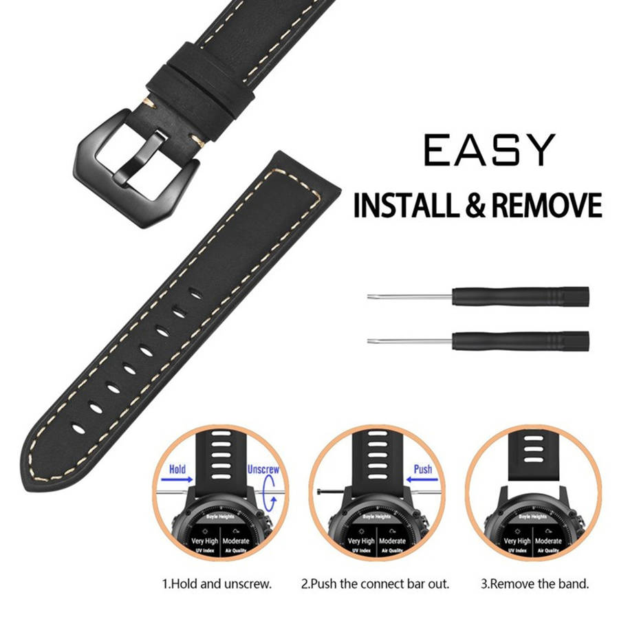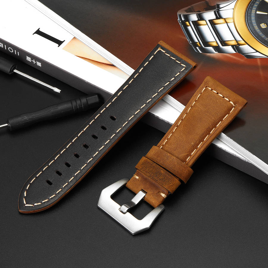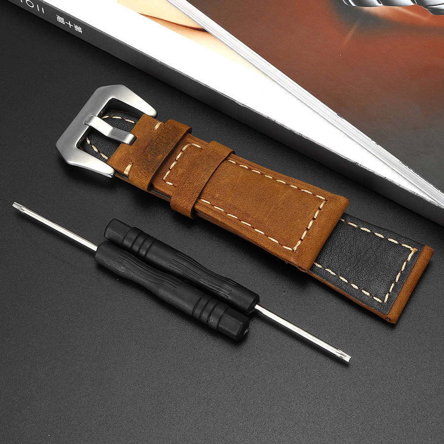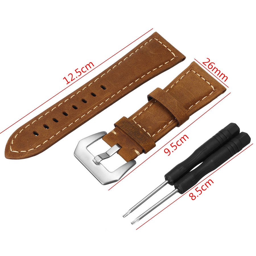 26mm Replacement Leather Wrist Watch Band Strap Belt Bracelet With Tools For ... (COLOR: BLUEBORDER)